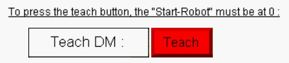 It is also possible to learn the DataMatrix code using the "Teach" push button. To learn the DataMatrix code, the "start robot" selector must be inactive :