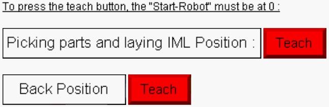 Learning the unloading position object and loading position "IML" (if "IML" option is present) in the mould by means of the "Teach" button of "Picking parts and laying IML Position".
